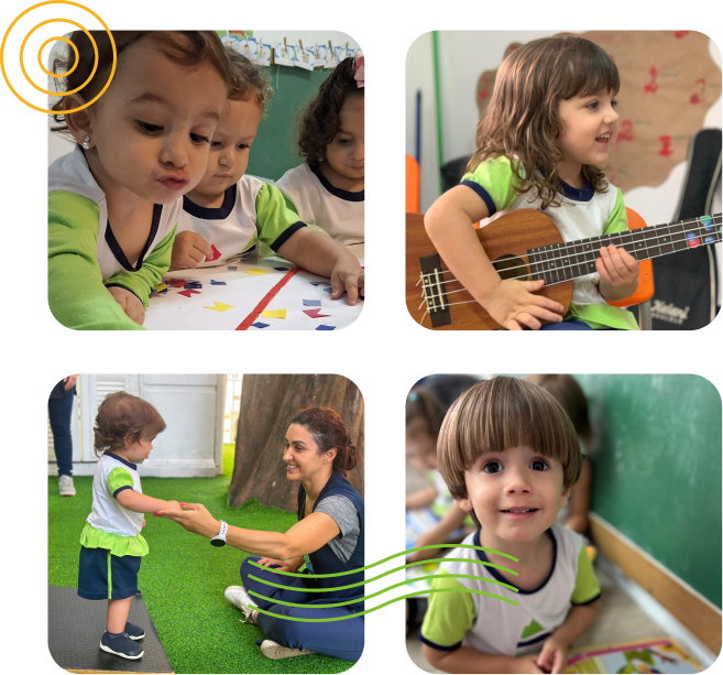 Além das aulas de música, que acontecem duas vezes por semana, nossos alunos participam diariamente de momentos de audição de música clássica. Essa prática promove um ambiente de escuta atenta, sensibilidade e apreciação artística.