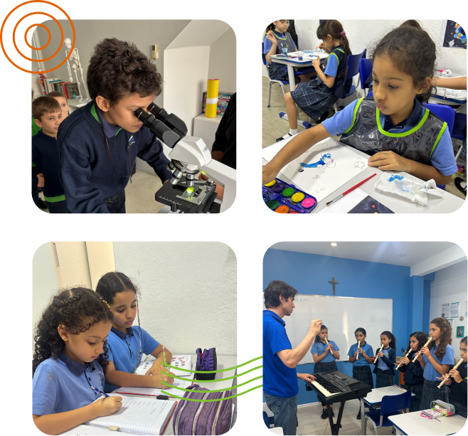Durante as aulas, eles aprendem sobre os sacramentos, a Igreja, os tempos litúrgicos, a vida de Jesus e Seus ensinamentos, bem como sobre a importância da oração e do amor ao próximo. Dessa forma, nossos alunos desenvolvem uma visão transcendente de si mesmos e do mundo, amadurecendo sua vida de fé e piedade.