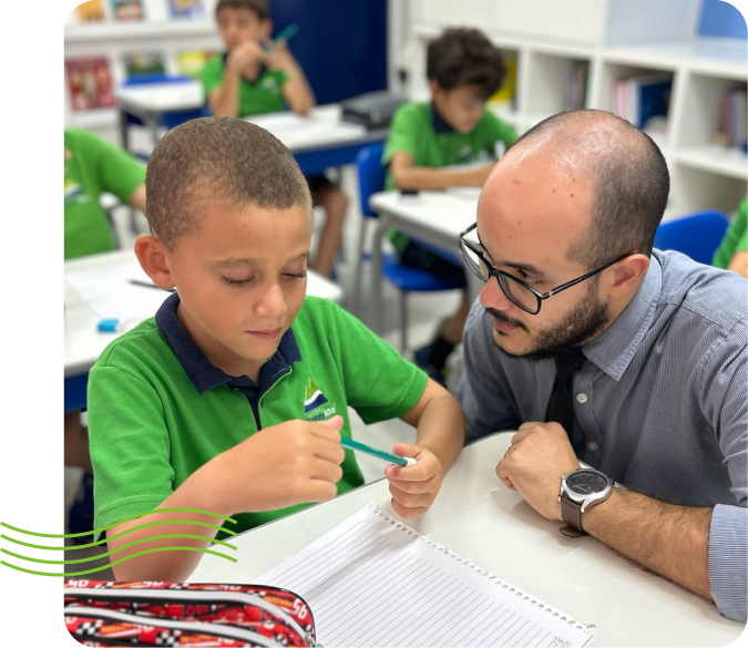 Assim como na Educação Infantil, os alunos do Ensino Fundamental têm aulas diárias de inglês, conduzidas por meio da metodologia de imersão. As aulas são ministradas por professores especialistas, de forma dinâmica, envolvente e contextualizada, promovendo o uso natural do idioma em diferentes situações.