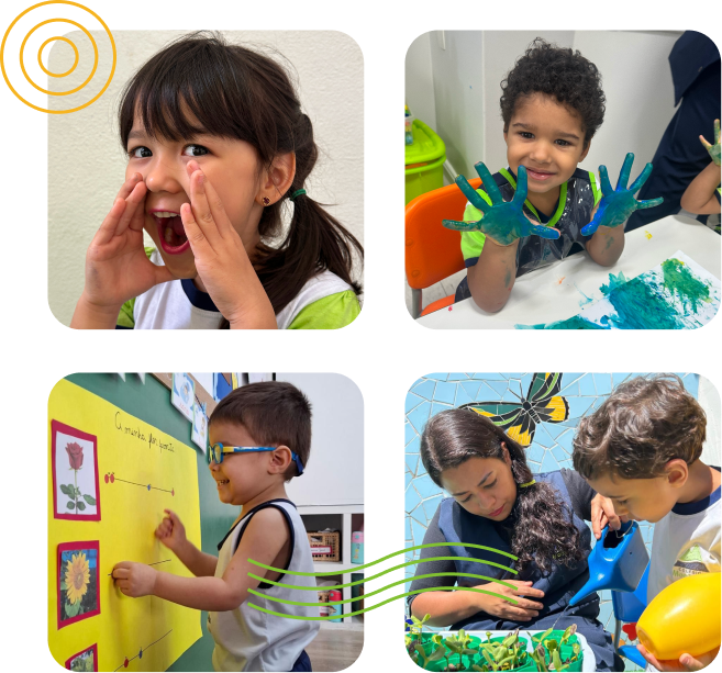 Buscamos alcançar o máximo potencial de cada criança, aproveitando sua curiosidade natural e incentivando a interação com um ambiente rico em estímulos. A exploração ativa do entorno contribui para a construção do conhecimento e o desenvolvimento do raciocínio, da linguagem e da criatividade.